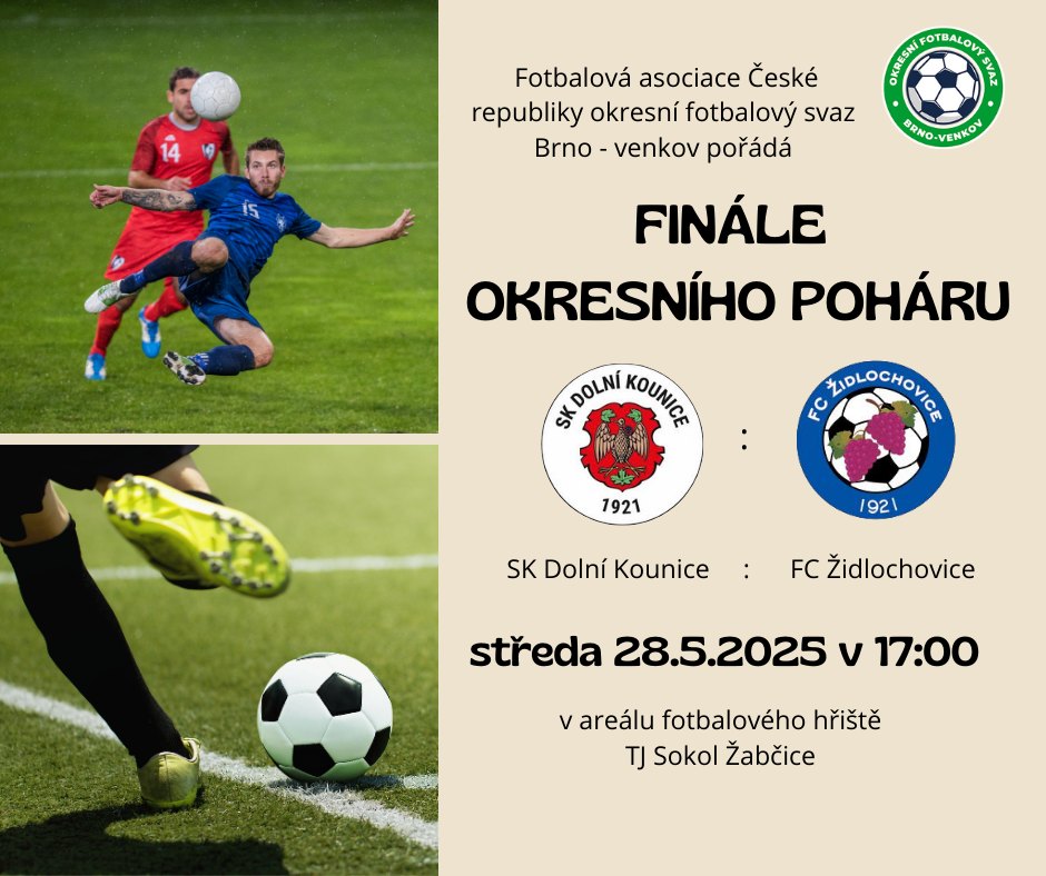 Finále okresního poháru ve fotbale 28.5.2025 v 17:00 hodin