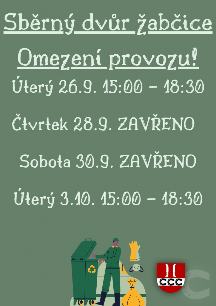 Sběrný dvůr Žabčice - Omezení provozu!