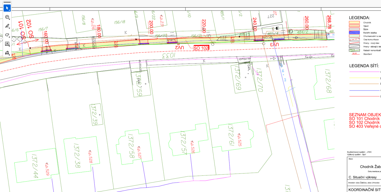 Výstavba chodníku Žabčice – Unkovice. Cílem projektu je především zvýšení bezpečnosti pěší dopravy mezi obcí a místní částí a lepší prostupnost tohoto úseku